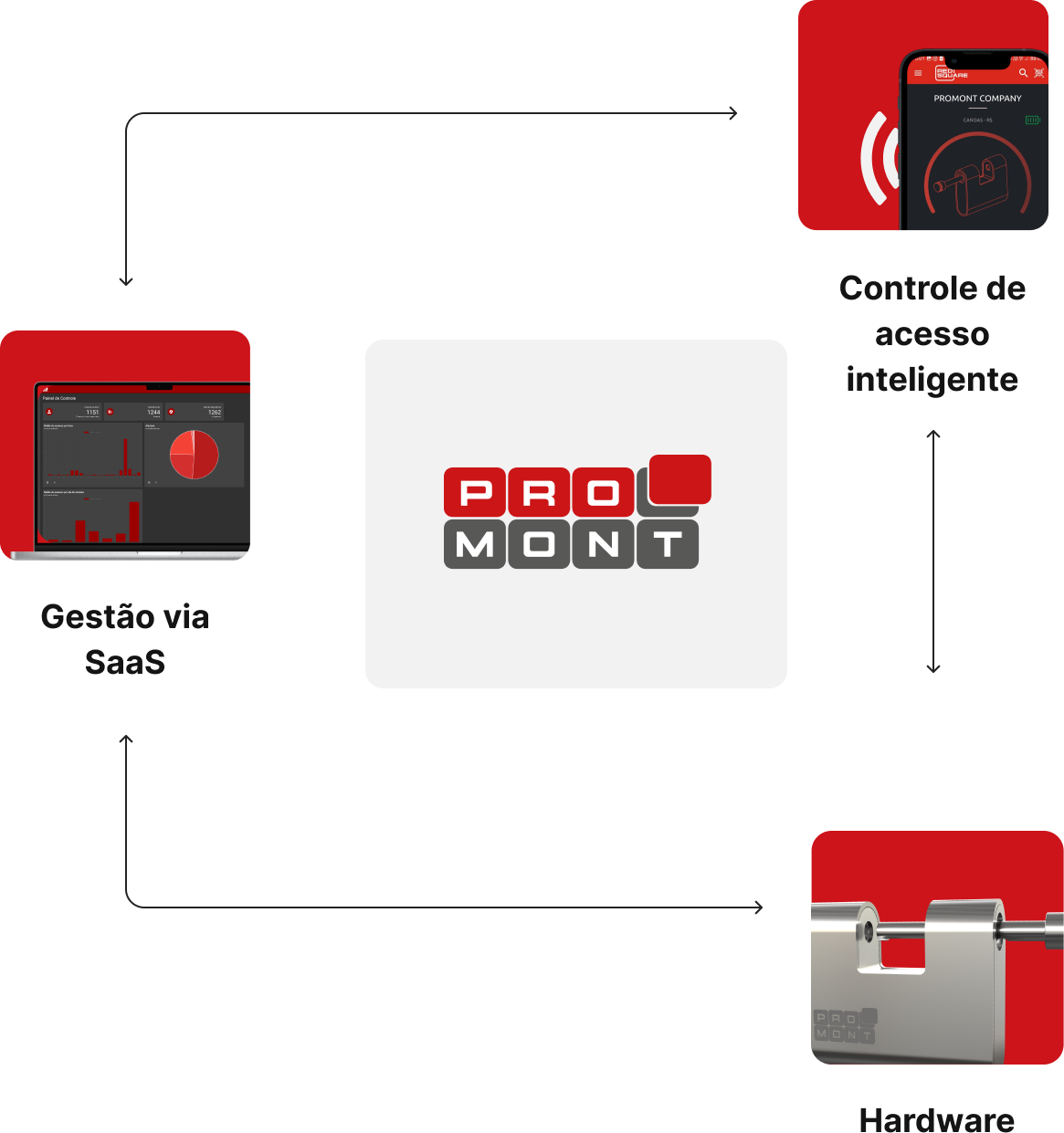 A Promont desenvolveu um ecossistema tecnológico que integra controle de acesso, monitoramento alarmístico e gestão de segurança via SaaS, criando um modelo escalável, eficiente e altamente seguro para empresas que precisam de controle total e tempo de resposta rápido.